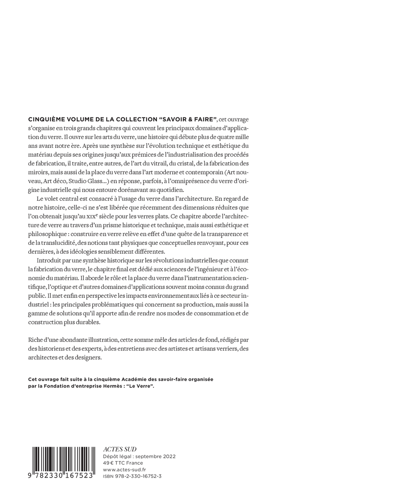 Cet ouvrage fait suite à la cinquième Académie des savoir-faire organisée par la Fondation d'entreprise Hermès : "Le verre".