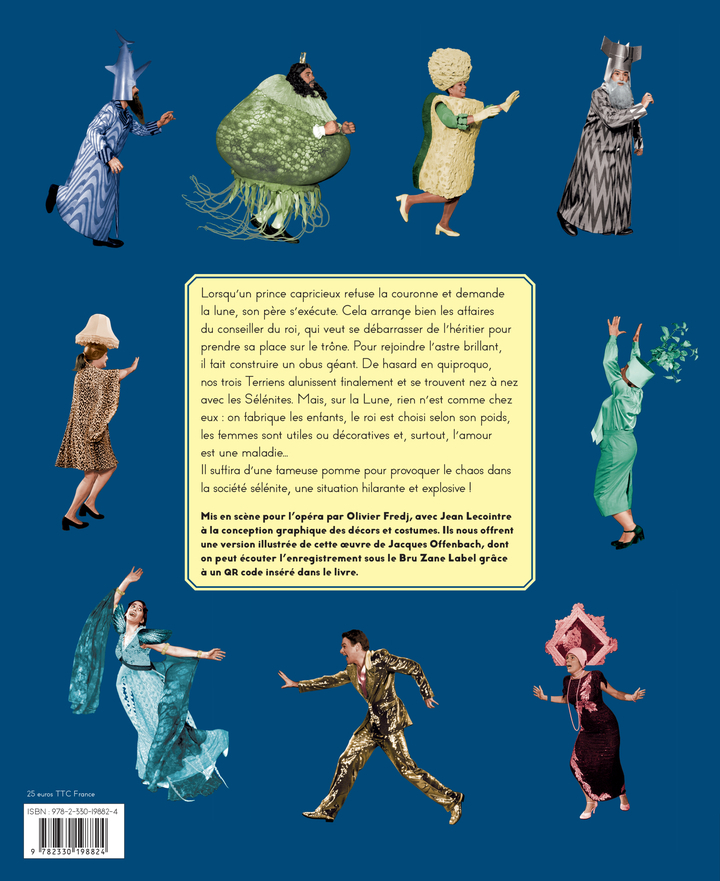 "Le Voyage dans la Lune" est un opéra d'Offenbach, d'après l'oeuvre de Jules Verne, créé en 1875 à Paris. Encensée par la critique et le public, la mise en scène d'Olivier Fredj, initialement produite par l'opéra de Montpellier, a fait depuis décembre 2020 le tour des maisons d'opéra françaises. Directeur artistique graphique du spectacle, auteur des décors et des costumes, Jean Lecointre en tire aujourd'hui cette bande dessinée musicale, hommage à Jules Verne et à Méliès, un livre drôle, burlesque, fantasmagorique et féérique... L'écoute de l'enregistrement réalisé par le Palazetto Bru Zane est disponible dans le livre via un QR code.