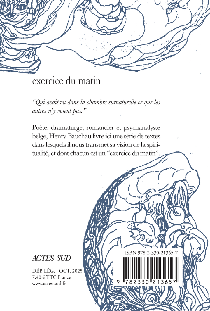 « Qui avait vu dans la chambre surnaturelle ce que les autres n'y voient pas ». Cette phrase de Henry Bauchau donne le ton à la suite de ses poèmes, réunis sous le titre de « Exercice du matin ». Médium, voyant, le poète nous transmet sa vision dans des textes dont chacun est un exercice de spiritualité.
