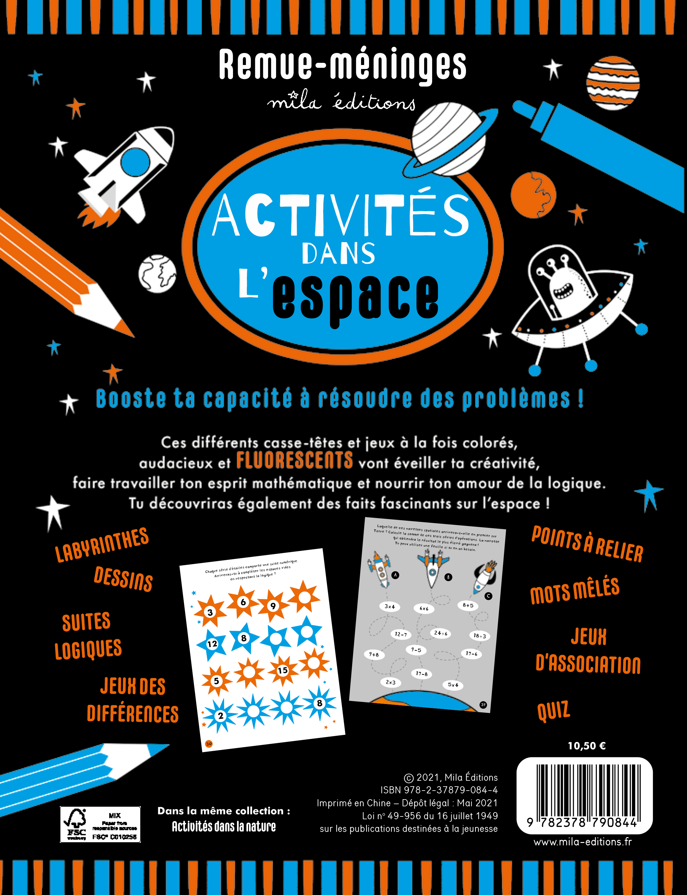 Des jeux sur le thème de l'espace ponctués d'anecdotes : labyrinthes, suites logiques, points à relier, quiz, entre autres.