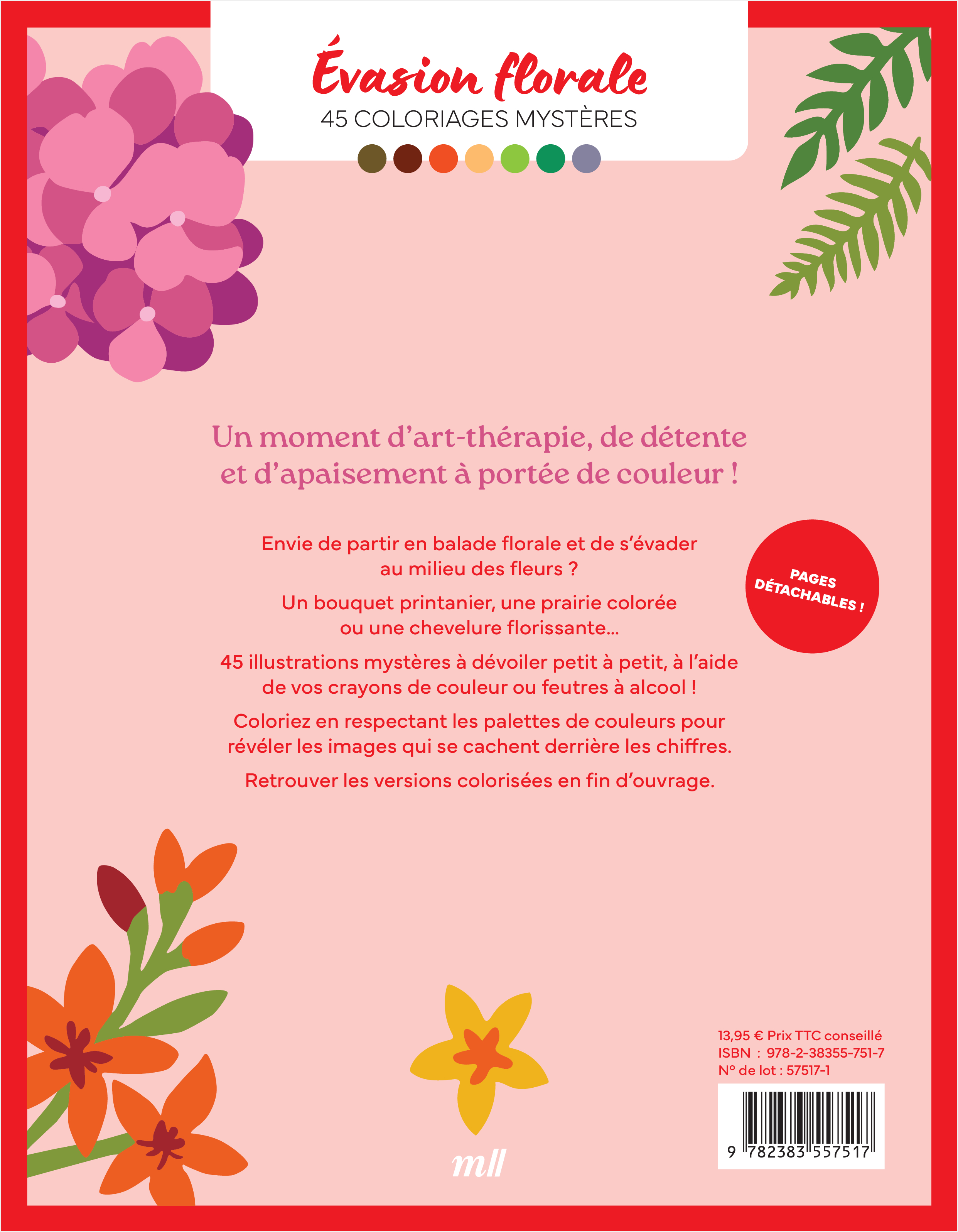 Évasion florale - 45 coloriages mystères - Avec des pages détachables !