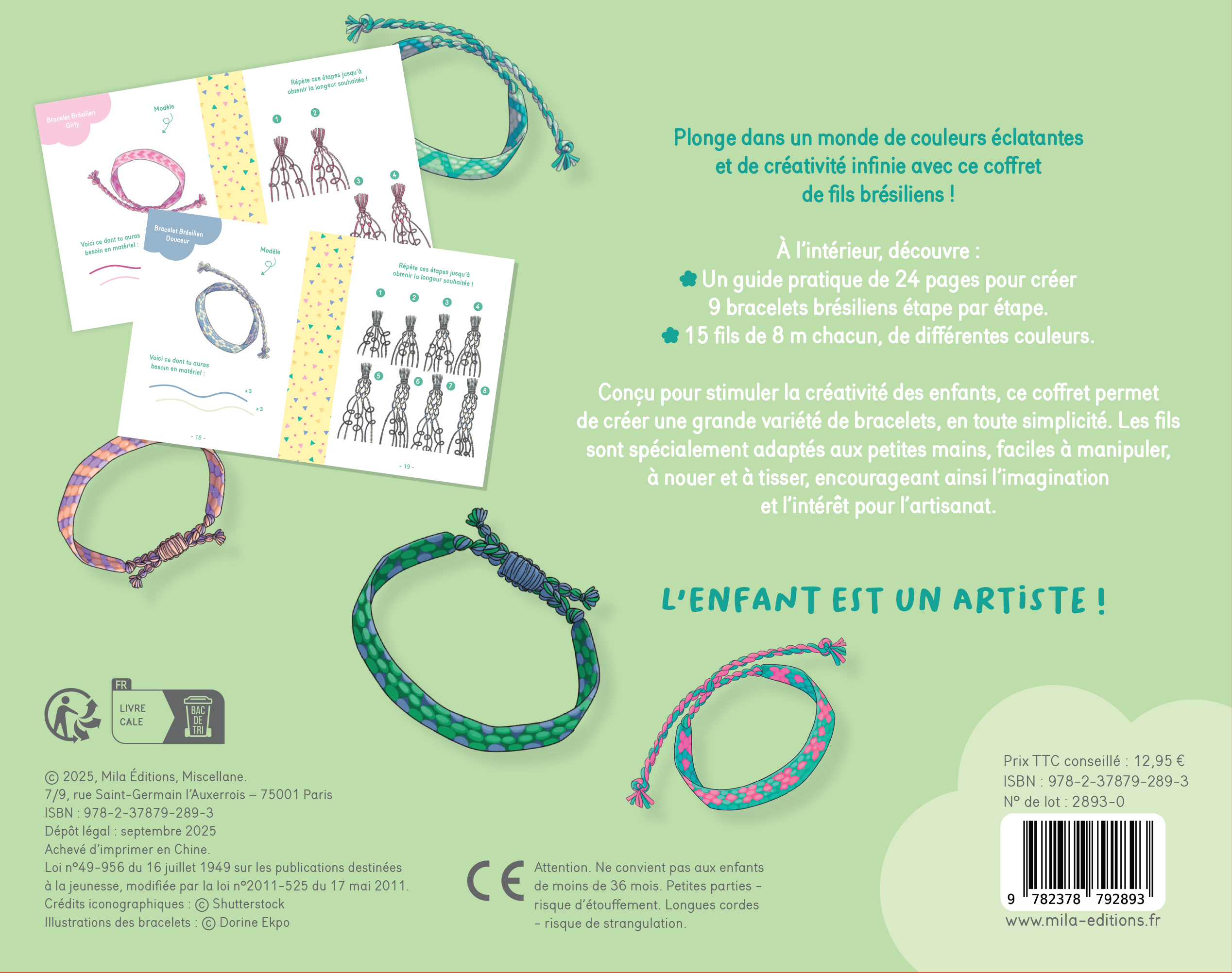 Mes jolis bracelets brésiliens à créer (coffret) - Des fils de différentes couleurs et un livre explicatif