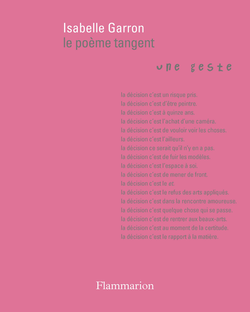 Le poème tangent a été composé à la suite d'entretiens menés auprès des 17 artistes visuelles du collectif la tangente. La tangente se forme à la suite des événements de Nuit Debout en 2016. Je les rejoins deux ans plus tard. À ce jour, notre réunion est exclusivement composée de femmes. Elles sont peintre, photographe, sculptrice, dessinatrice, vidéaste, artiste conceptuelle, installatrice, performeuse... La création est ce qui nous détermine, avant notre sexe, avant notre âge, avant notre mode de subsistance. L'enquête poétique, dont le poème est issu, germe avec la préparation de l'exposition-performance du banquet de la tangente qui s'est déroulée du 15 au 17 septembre 2023 à l'Atelier Blanc, centre d'art situé à Villefranche de Rouergue en Aveyron. La pensée du poème tangent est contemporaine de cet événement. La poésie n'a pas d'endroit. Elle erre et puis elle fixe. L'écriture du poème tangent trouve son lieu à l'écoute de ces voix différentes mises en commun. Ici, la parole de l'artiste est la poésie. I. G.