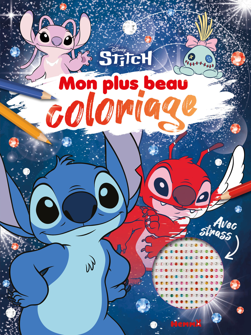 Tous les héros de Lilo et Stitch dans ce beau livre avec strass pour faire scintiller les coloriages.