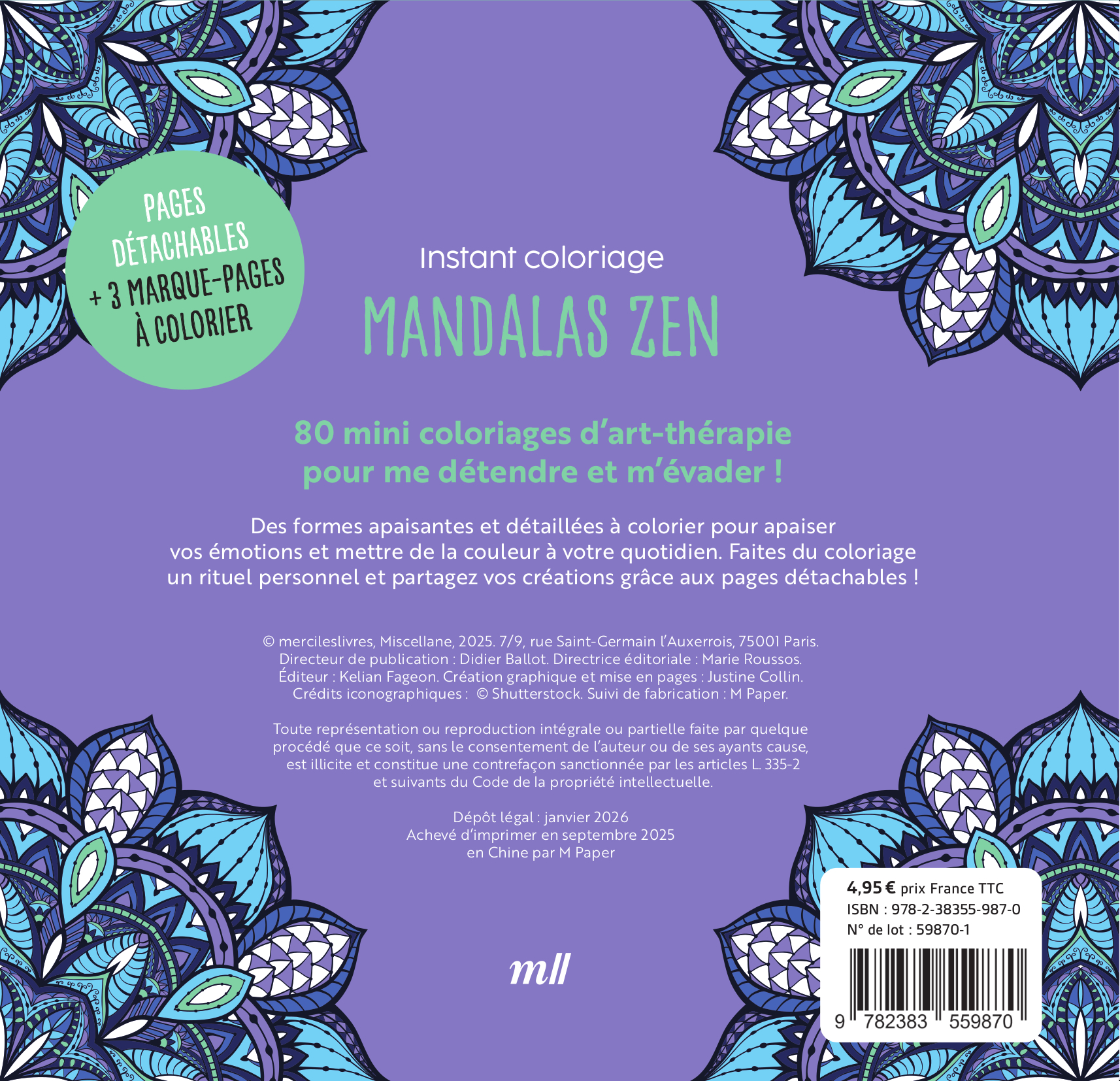 Instant coloriage - Mandalas zen - 80 coloriages et 3 marque-pages