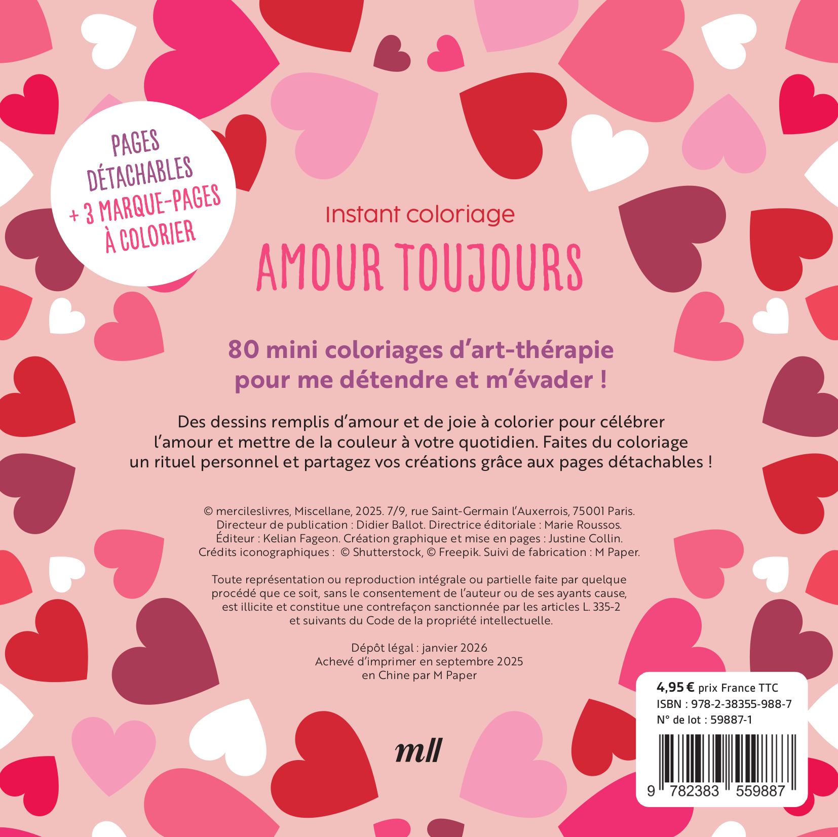 Instant coloriage - Amour toujours - 80 coloriages et 3 marque-pages