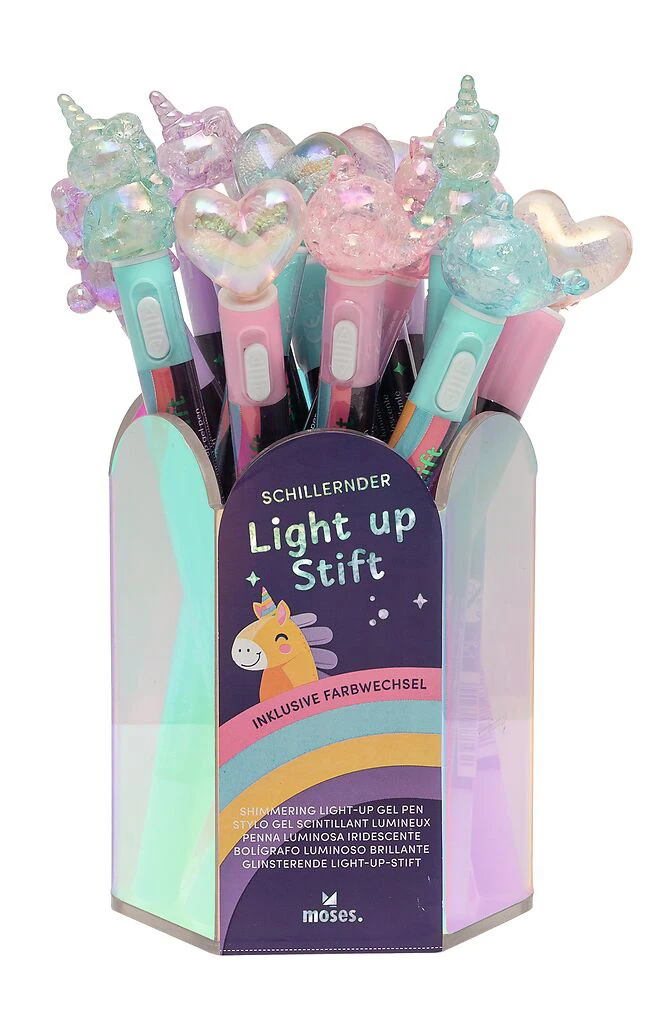 lot de 18 stylos gel lumineux, modèles assortis avec présentoir