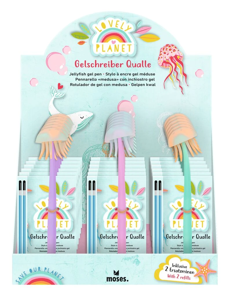 Présentoir de 18 stylos à encre gel méduse