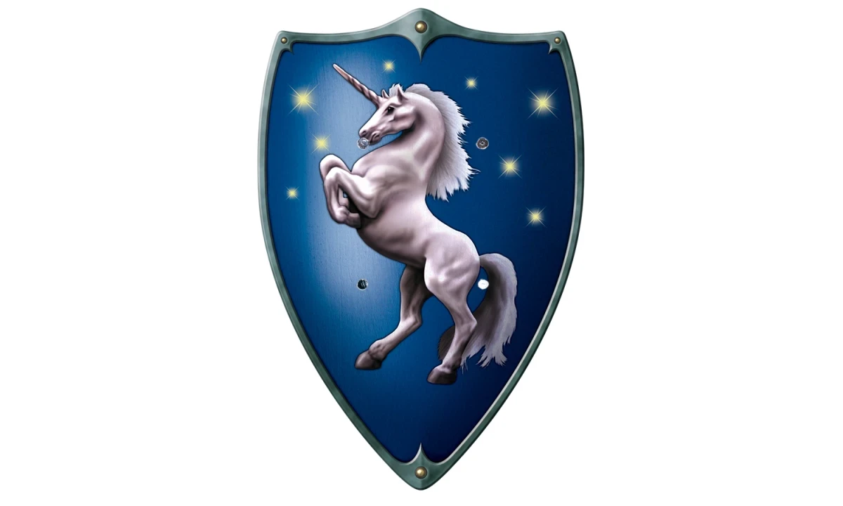 Bouclier chevalier en bois licorne bleu